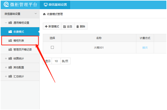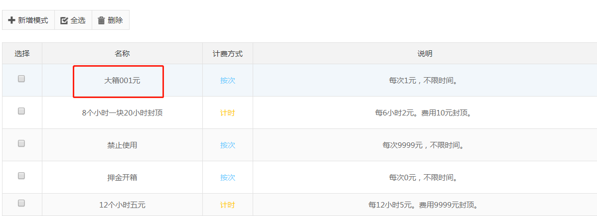 收費模式設(shè)置完成之后進到箱子列表(步驟參考“第三步:應(yīng)用收費模式”),