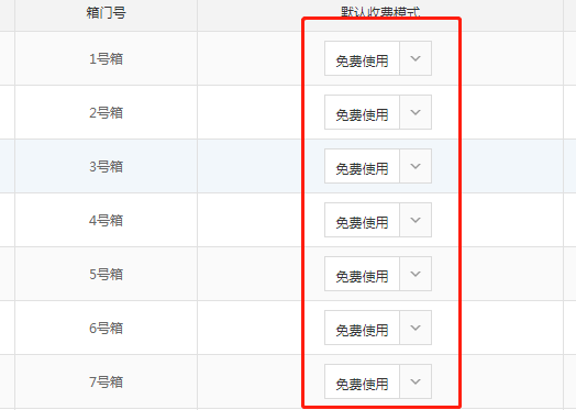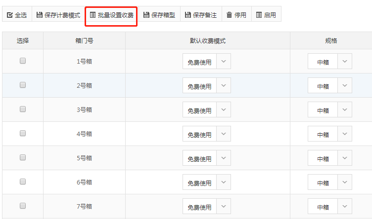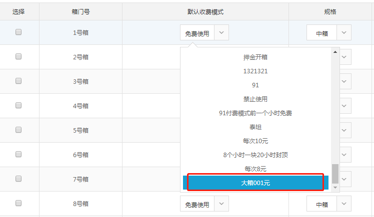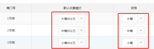 3. 可以看到當(dāng)前箱門信息,也可以設(shè)置默認收費模式、規(guī)格等功能