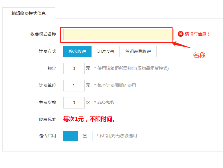 1) 我們可以根據(jù)自己需求對收費模式命名、設(shè)置計費方式(按次收費、計