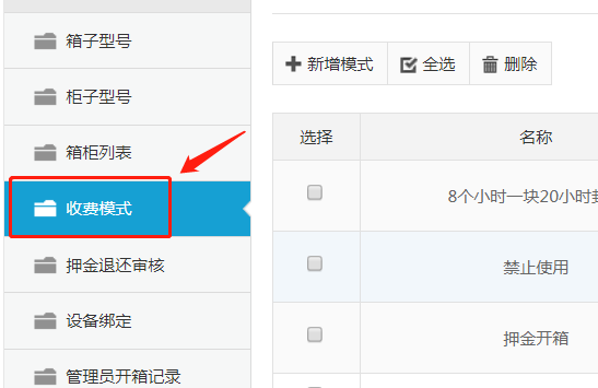 1. 選擇左側(cè)菜單中“收費模式”功能