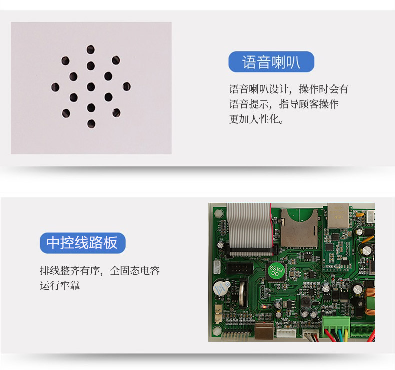 2.語(yǔ)音喇叭:人性化設(shè)計(jì),語(yǔ)音喇叭;操作時(shí)會(huì)有語(yǔ)音提示,指導(dǎo)顧客操作,人機(jī)交互性強(qiáng)